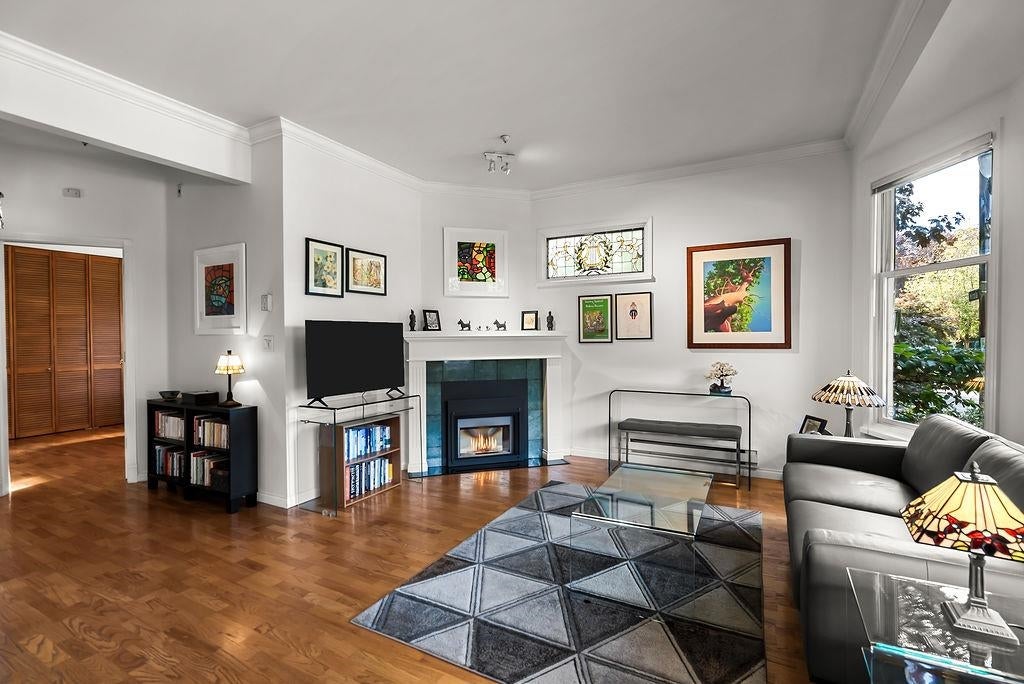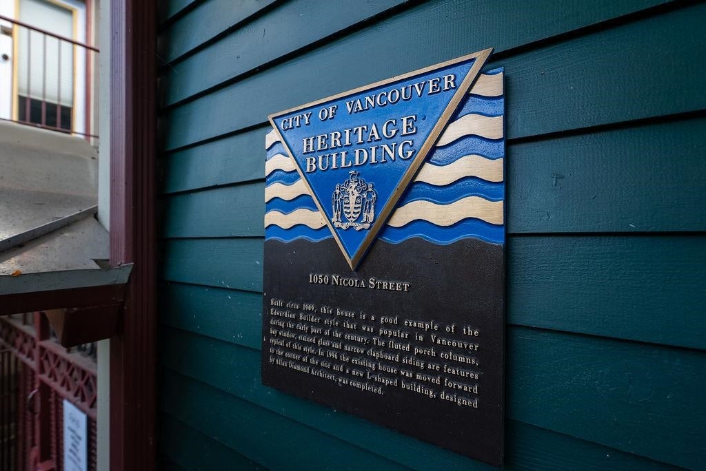 When they converted this 1909 heritage building, they kept the entire ground floor as one residence — something that almost never happens. Most get chopped into rentals. This one stayed whole. Windows on all four sides. No shared walls. Bay windows, oak floors, stained glass, and a 125 sq ft covered veranda. You're not in a tower or typical condo — you're in an actual house. 2 bed, 2 bath, 858 sq ft with underground parking, massive crawlspace storage plus large locker, and pets welcome. Only two heritage units exist in the building. This is the only one under 1,000 sq ft. Extremely well-run strata. Fully rebuilt 1995 with modern systems while preserving character. Steps from the seawall, Stanley Park, English Bay, and the best dining on Denman and Robson. Open Sat/Sun Nov 29-30, 2-4pm.