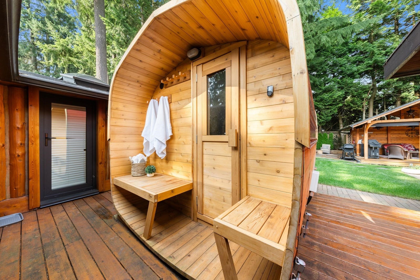 Located on a quiet cul-de-sac, this exceptional Blueridge home blends history & modern living on a flat, sunny lot, that is just under 13,000 sq/ft. With over $800,000 in upgrades: sandblasted and re-stained logs, new windows, doors, plumbing, electrical, roof, drainage, heated floors, bathrooms, A/C, Italian kitchen, EV charging etc, there is nothing you need to do but move in. The 4-bed home includes a private master suite w/seating area, ensuite, infrared sauna, and attached office w/ separate entrance. Entertain outdoors with your private gazebo, full outdoor kitchen & custom sauna, all surrounded by landscaped gardens w/ irrigation. With room for an RV/boat, abundant storage, & access to trails, mountain biking, & top schools, this home offers the ultimate North Shore lifestyle.